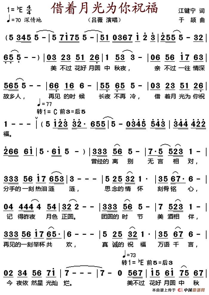 关于《借着月光为你祝福 》曲谱的评论