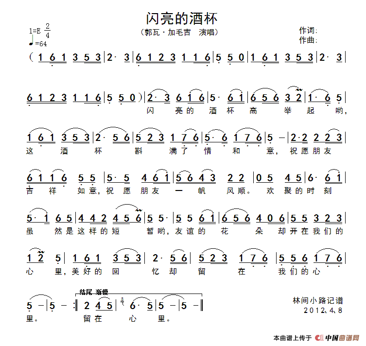 提示:在曲谱图片上单击右键,选择“图片另存为...”即可将曲谱保存到您的电脑中,打印时候可将图片插入到WORD中,调整合适大小打印即可。