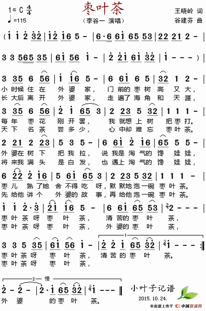 关于《枣叶茶》曲谱的评论