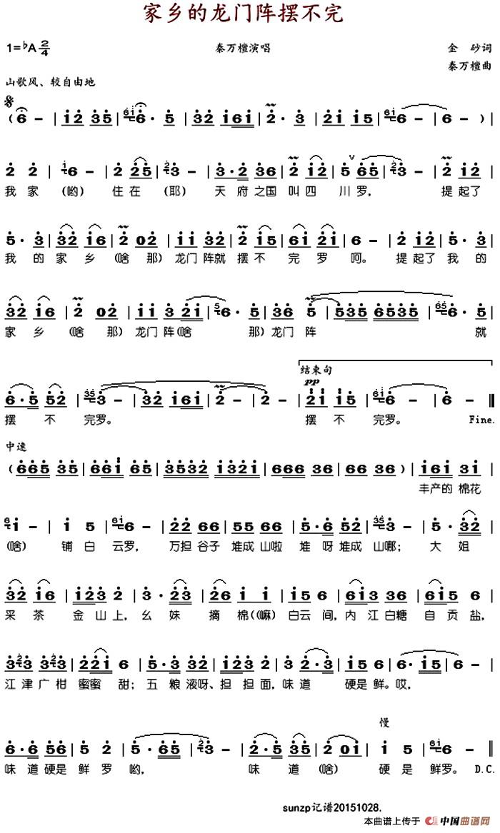 当前位置: 首页 谱友园地 谱友记谱 家乡的龙门阵摆不完