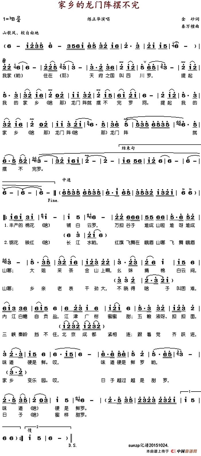 关于《家乡的龙门阵摆不完》曲谱的评论