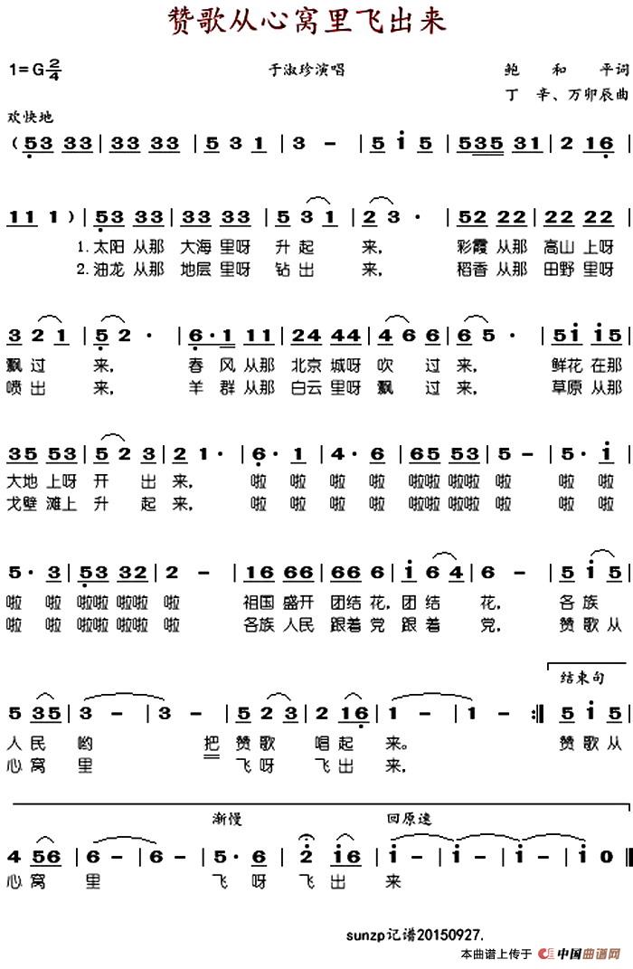关于《赞歌从心窝里飞出来 》曲谱的评论