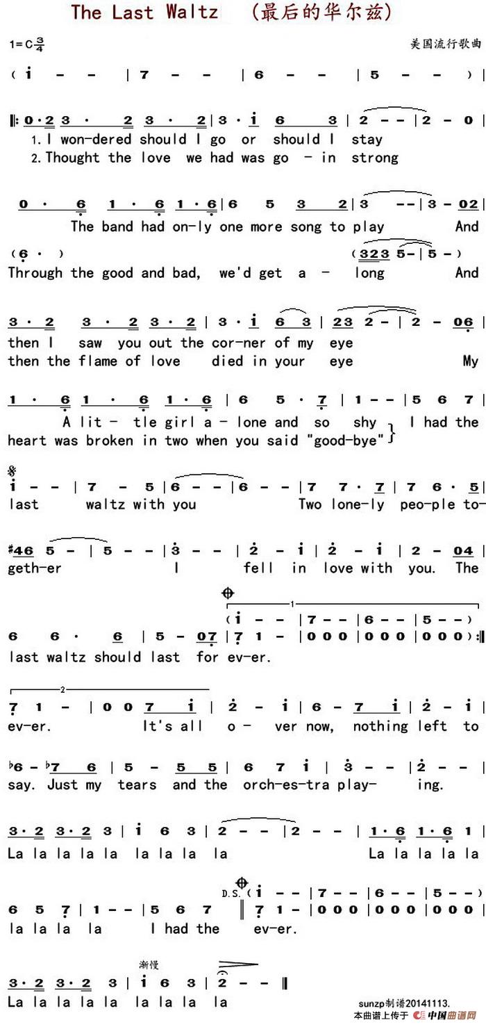 关于《最后的华尔兹(英文)》曲谱的评论
