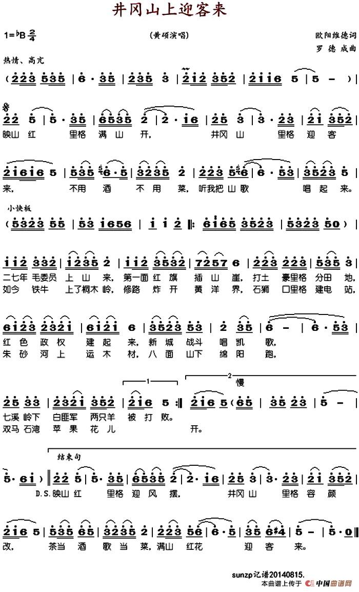关于《井冈山上迎客来(黄硕)》曲谱的评论