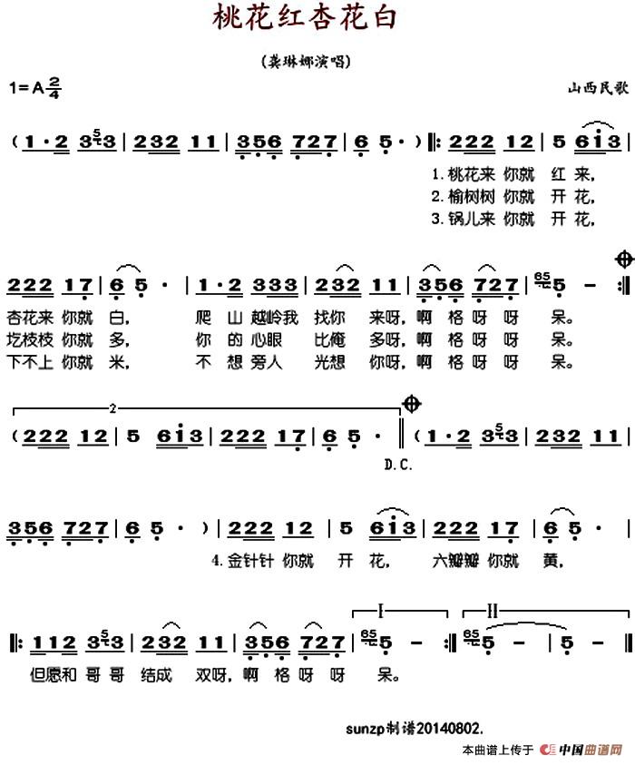 关于《桃花红杏花白》曲谱的评论