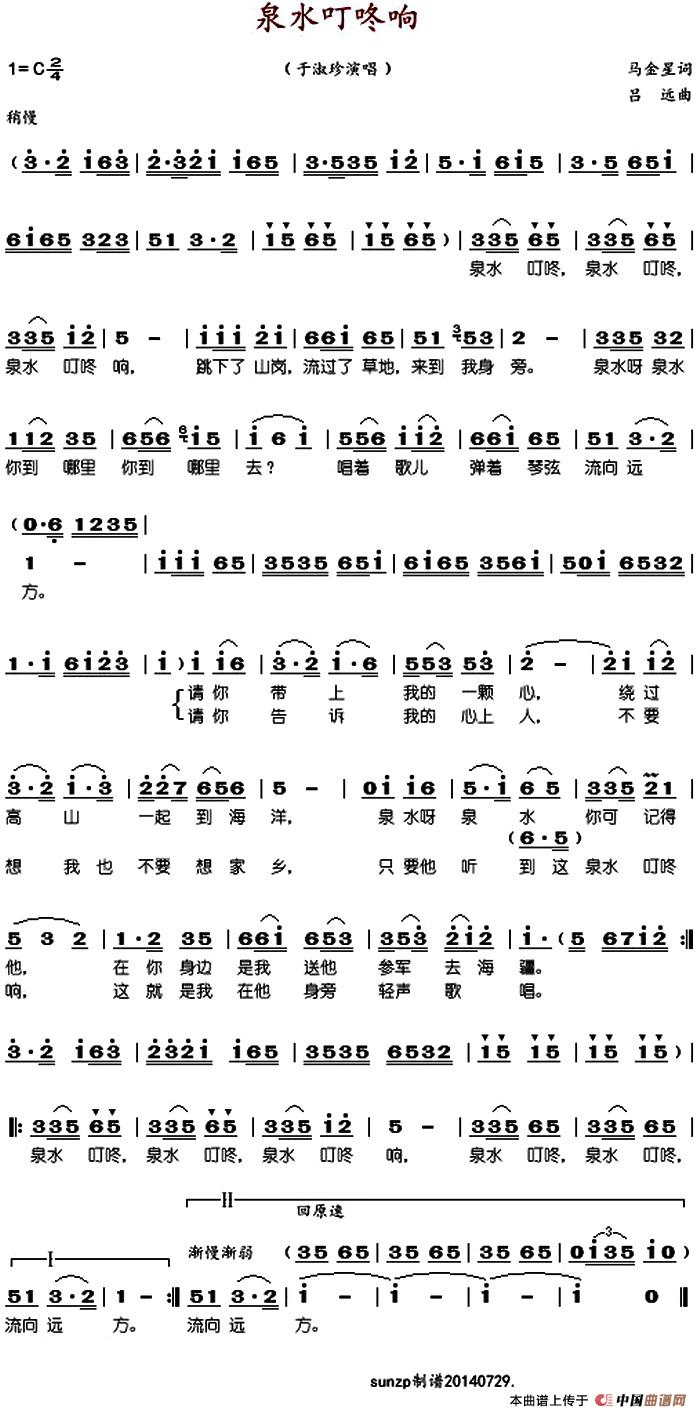 关于《泉水叮咚响(于淑珍版)》曲谱的评论