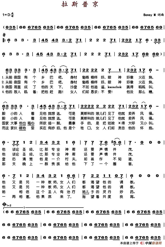 关于《拉斯普京》曲谱的评论