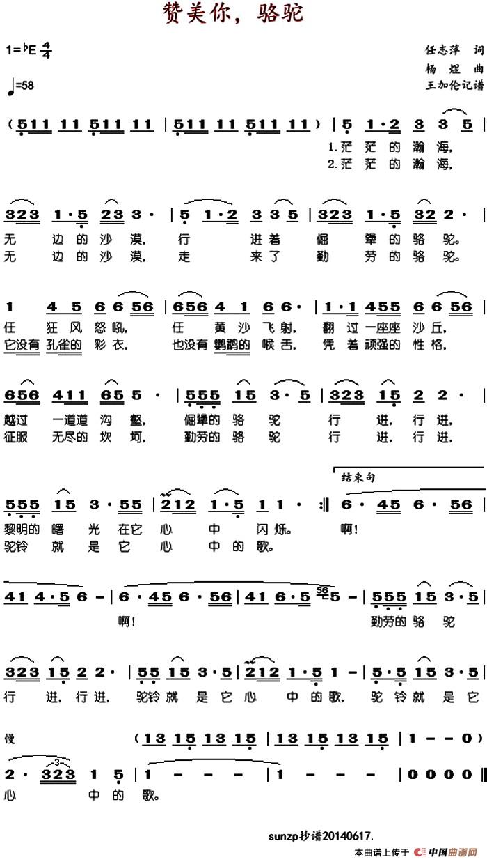 关于《赞美你,骆驼(杨煜曲)》曲谱的评论