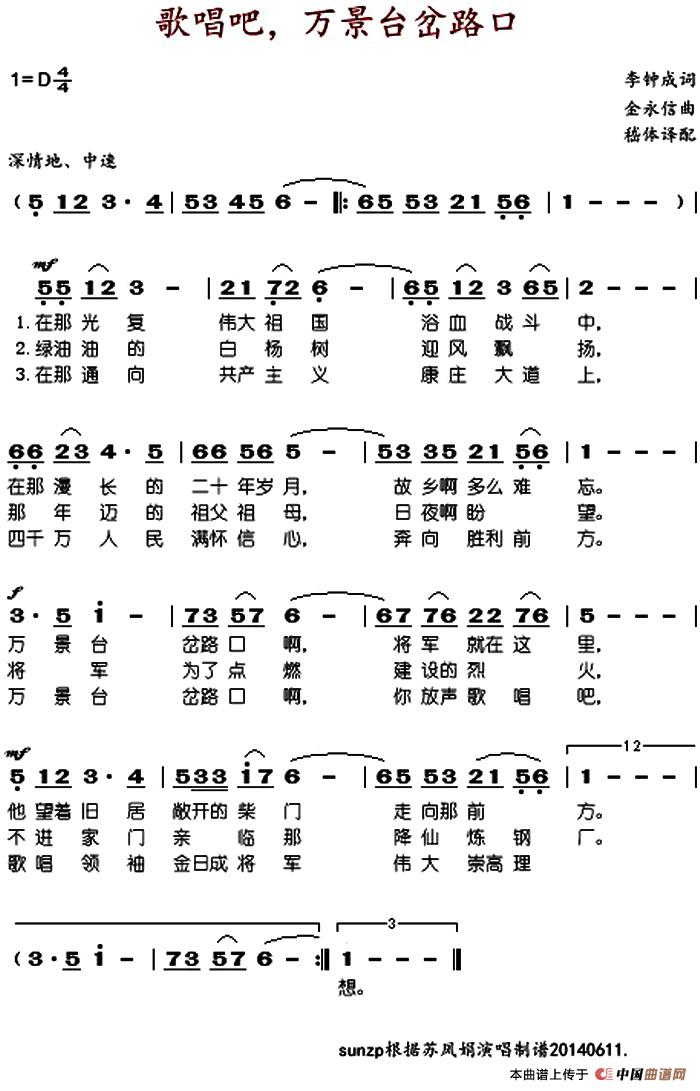 关于《歌唱吧,万景台岔路口》曲谱的评论