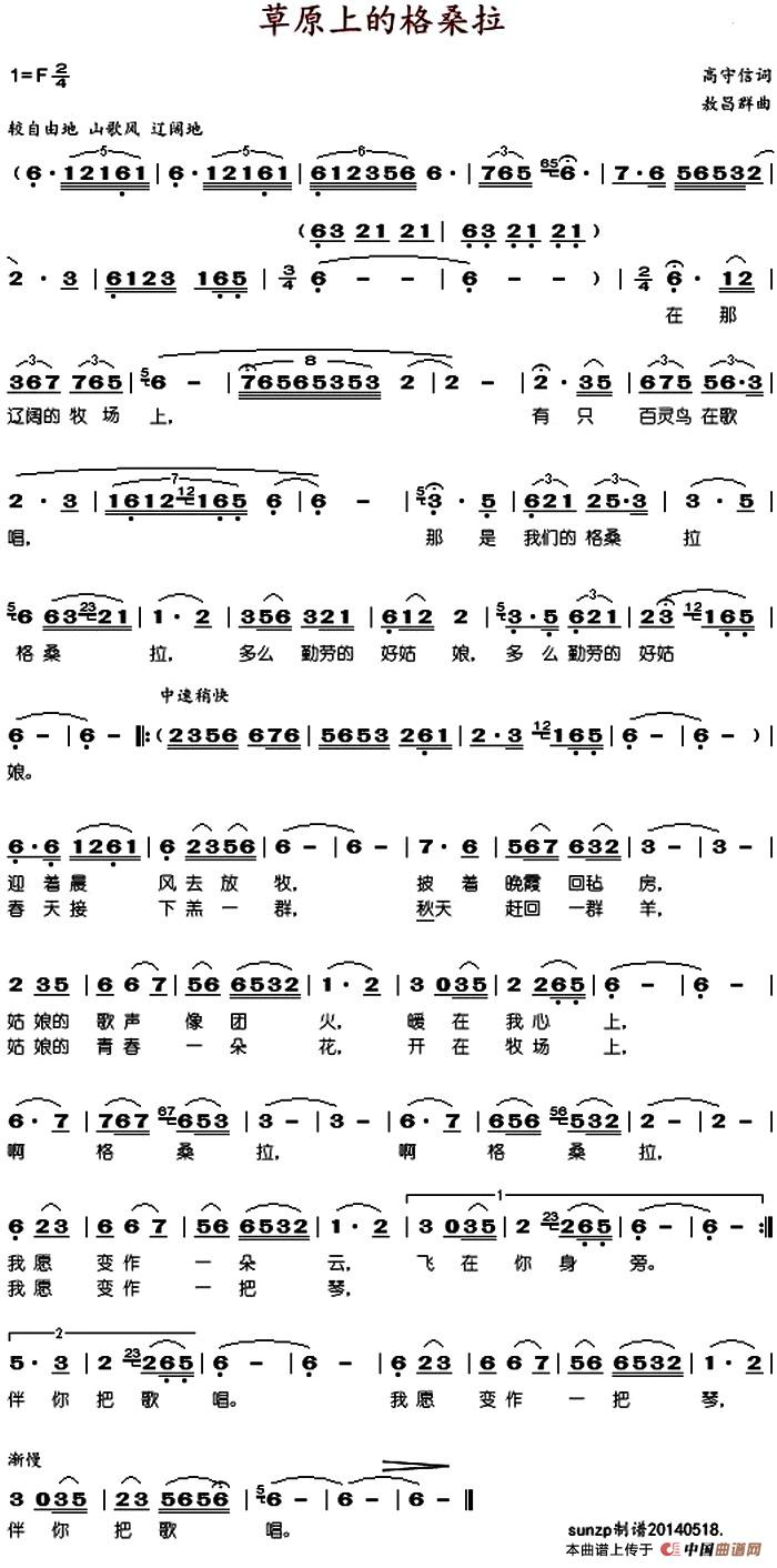 关于《草原上的格桑拉(谭维维)》曲谱的评论