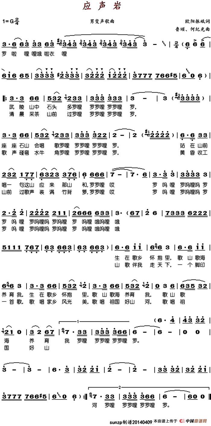 关于《应声岩》曲谱的评论