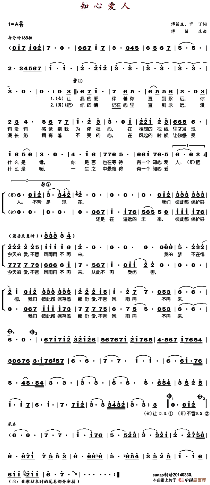 作词:傅笛生、甲丁 作曲:傅笛生 演唱(奏):任静、傅笛生 来源:sunzp记谱制谱 上传:热爱音乐88
