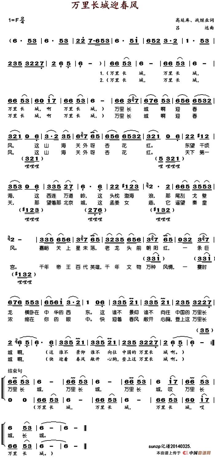 当前位置: 首页 谱友园地 谱友记谱 万里长城迎春风