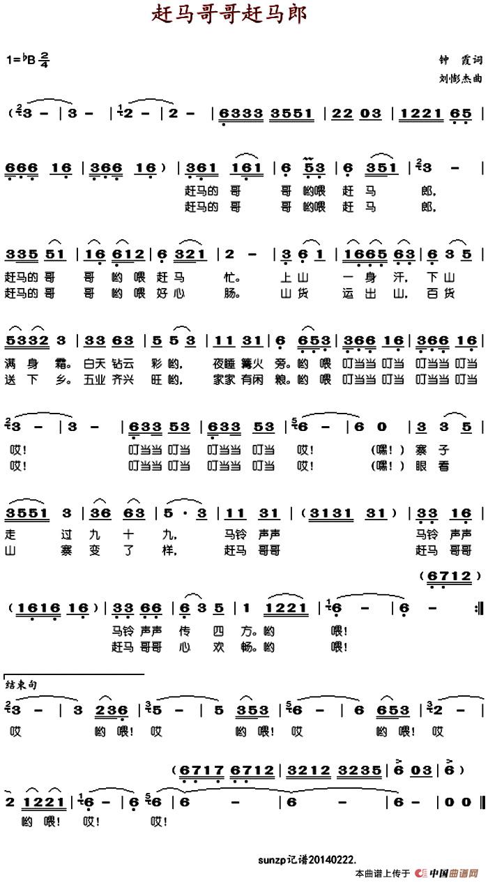 关于《赶马哥哥赶马郎》曲谱的评论