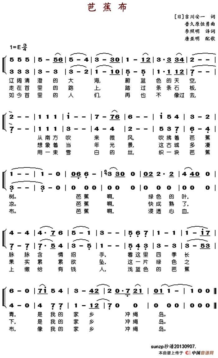 关于《芭蕉布》曲谱的评论