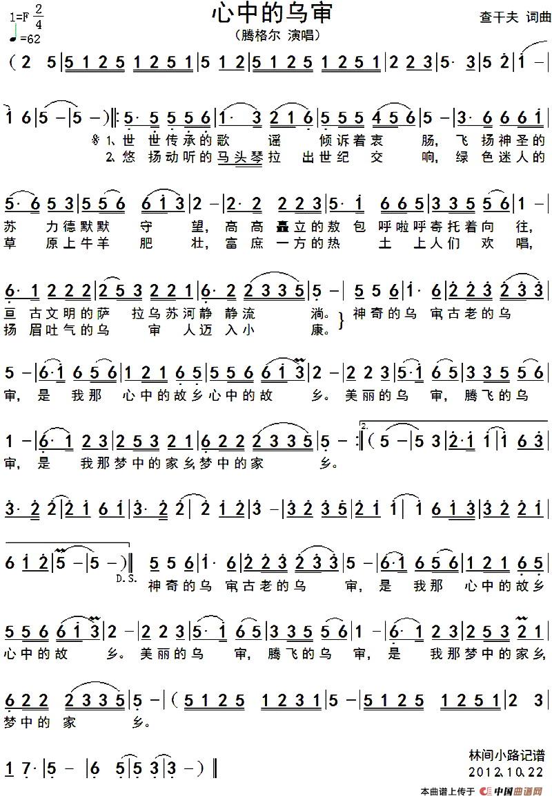 关于《心中的乌审》曲谱的评论