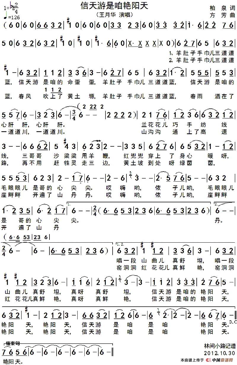关于《信天游是咱艳阳天》曲谱的评论