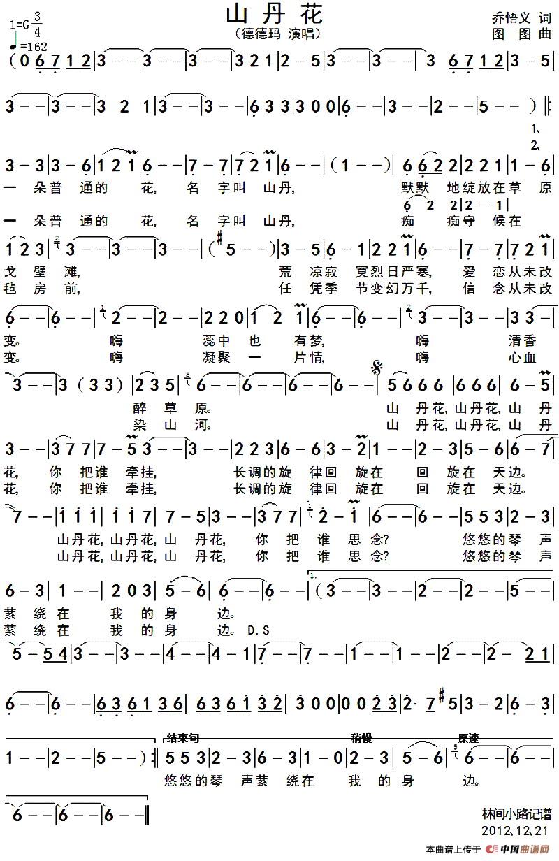 关于《山丹花》曲谱的评论