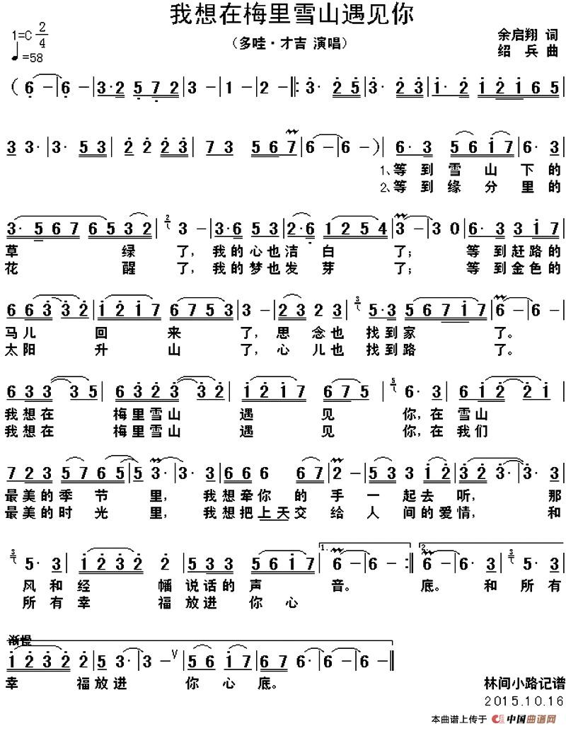 关于《我想在梅里雪山遇见你》曲谱的评论