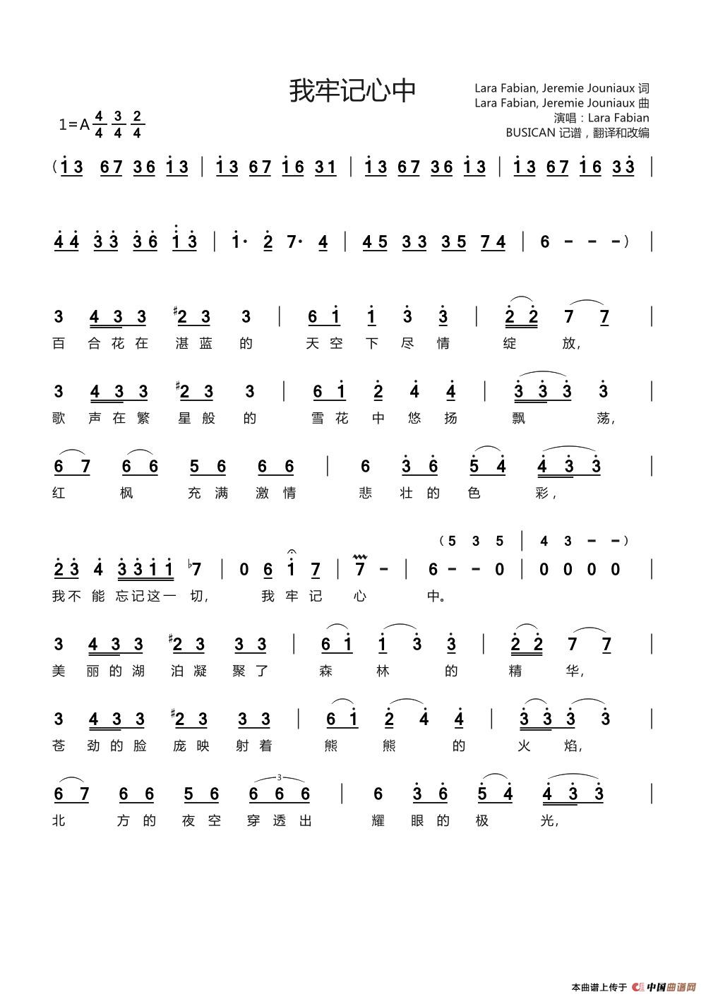 作词:Lara Fabian Jeremie Jouniaux 作曲:Lara Fabian Jeremie Jouniaux 来源:BUSICAN记谱,翻译和改编 上传:圣SADL