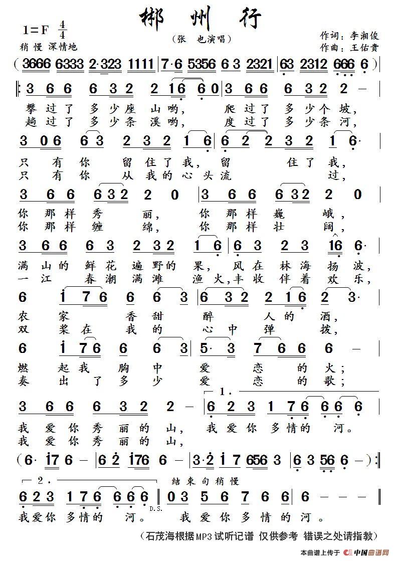 关于《郴州行 ( 作词:刘湘俊 作曲:王佑贵) 》曲谱的评论