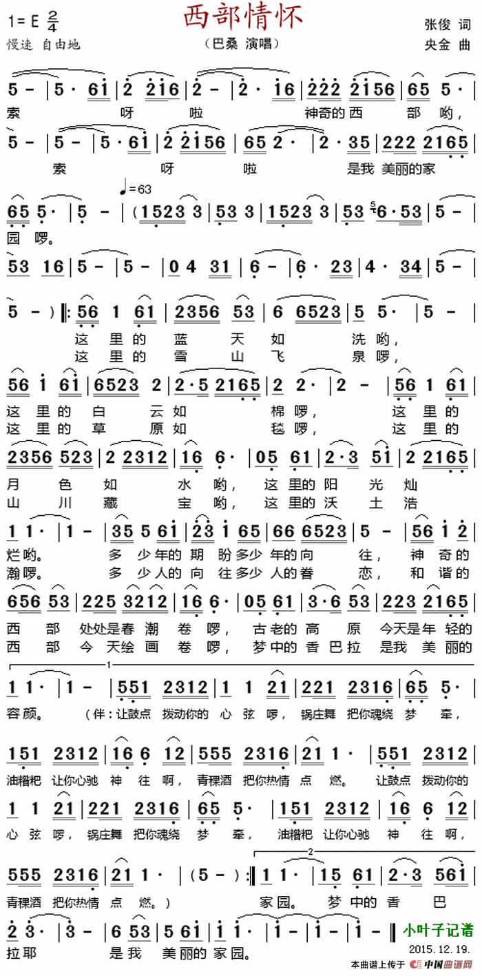 关于《西部情怀 》曲谱的评论