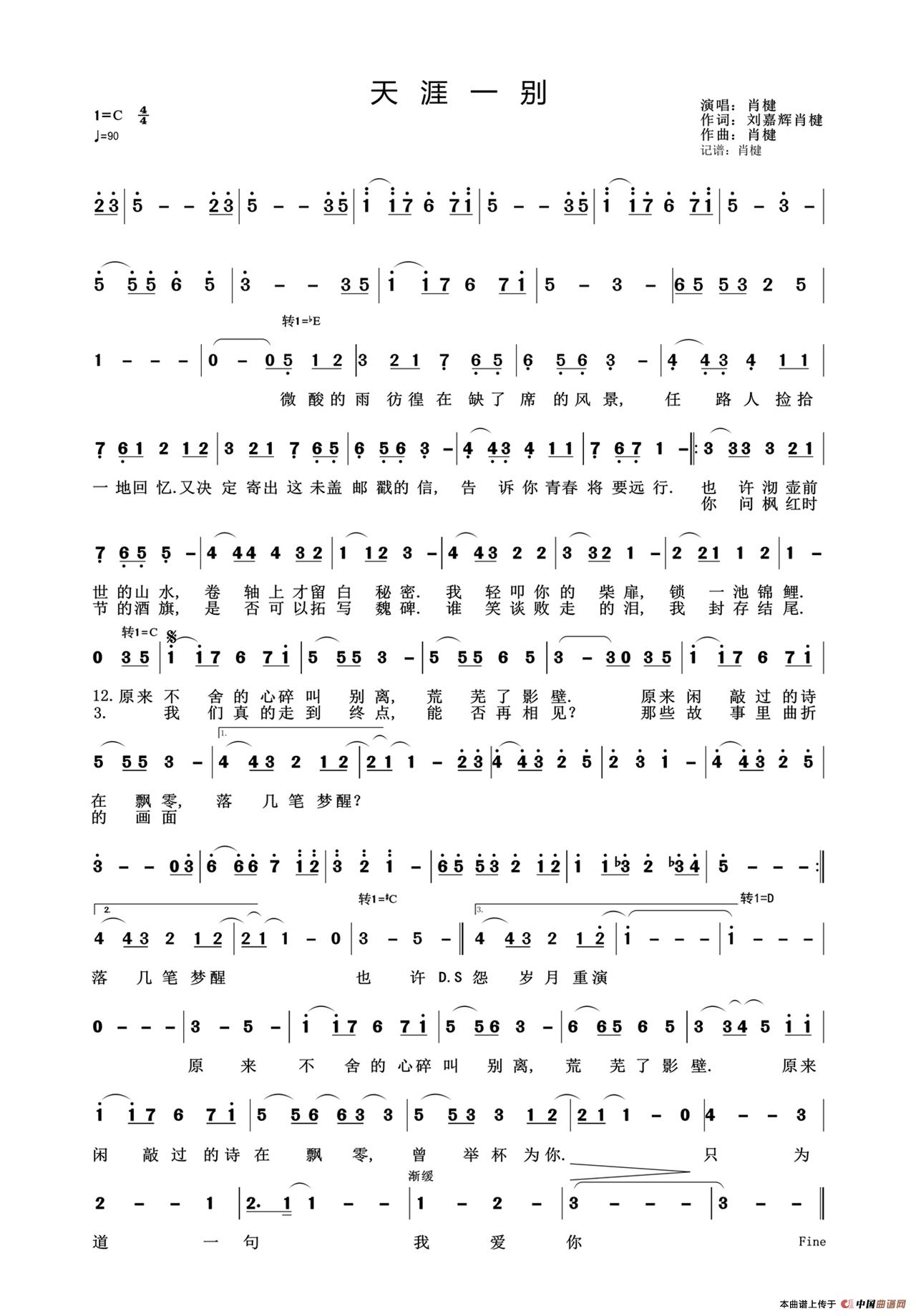 关于《天涯一别(又名:几别天涯)》曲谱的评论