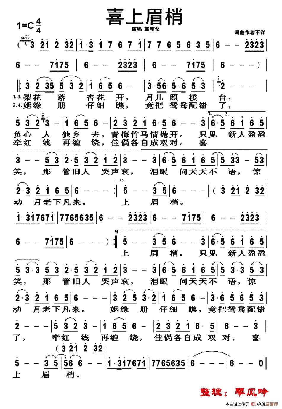 关于《喜上眉梢》曲谱的评论