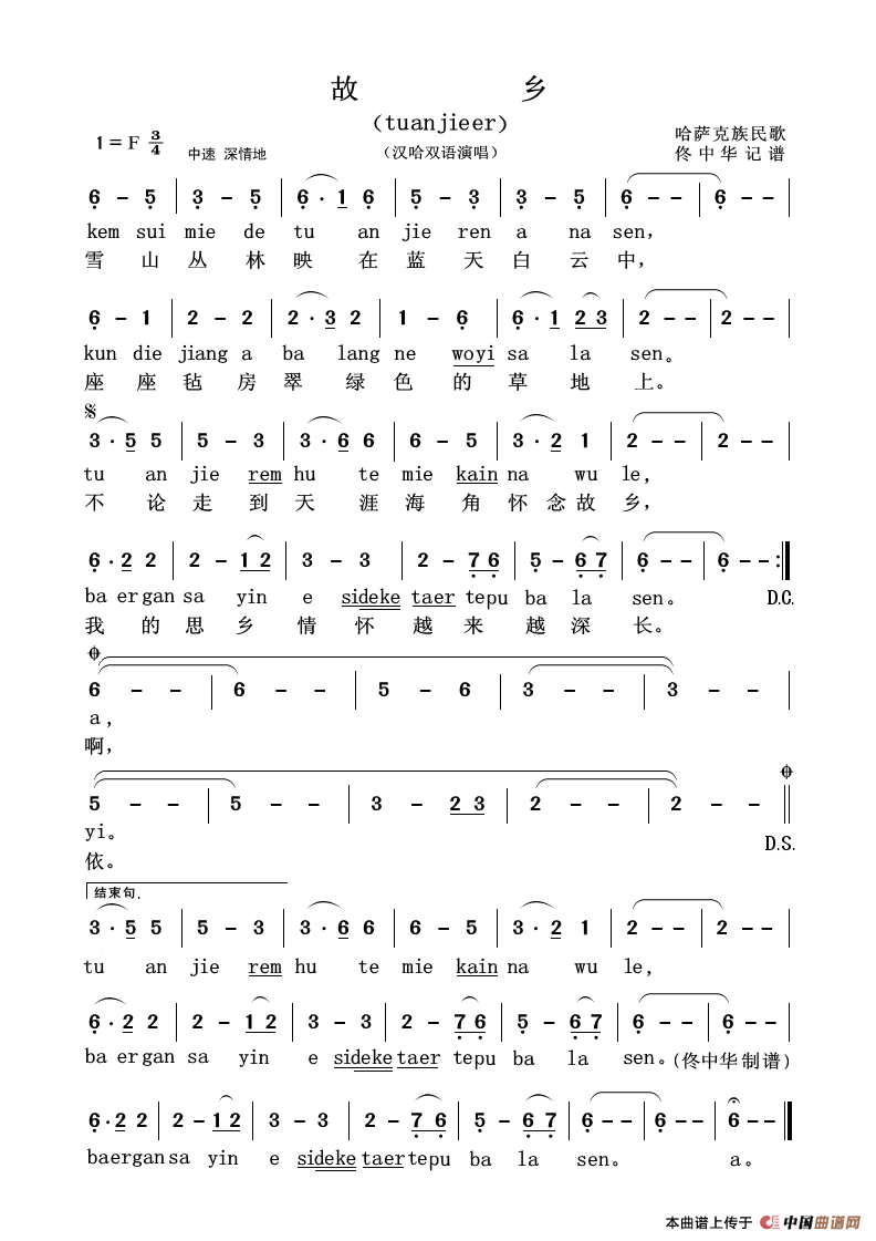来源:佟中华记谱 上传:新疆好