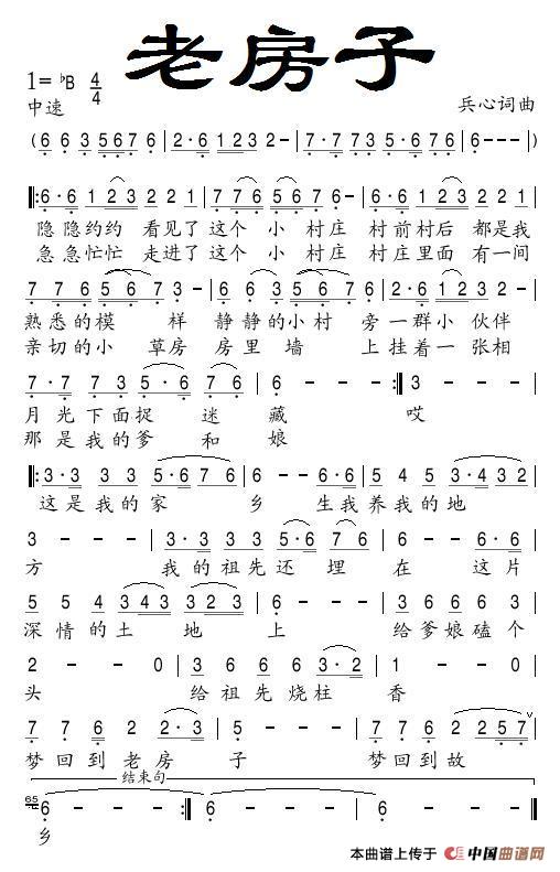 关于《老房子》曲谱的评论