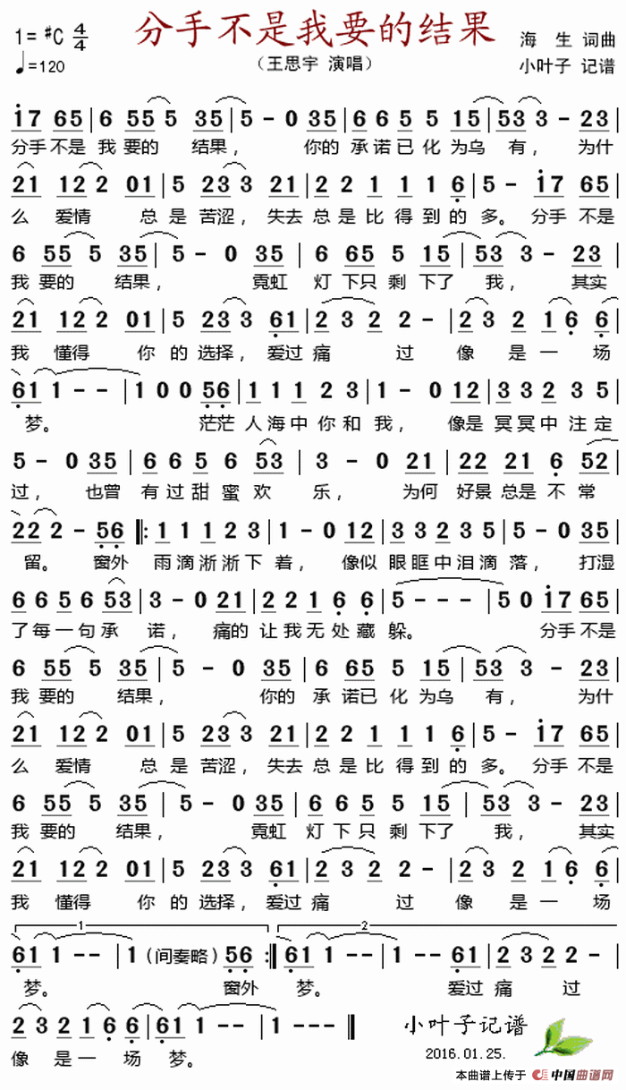 提示:在曲谱图片上单击右键,选择“图片另存为...”即可将曲谱保存到您的电脑中,打印时候可将图片插入到WORD中,调整合适大小打印即可。