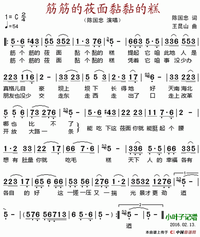 关于《筋筋的莜面黏黏的糕》曲谱的评论