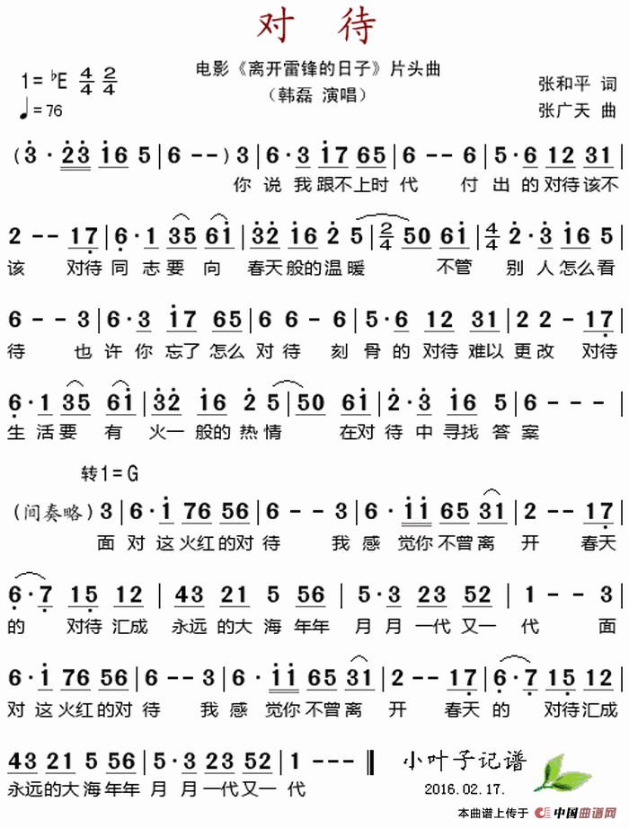 关于《对待》曲谱的评论