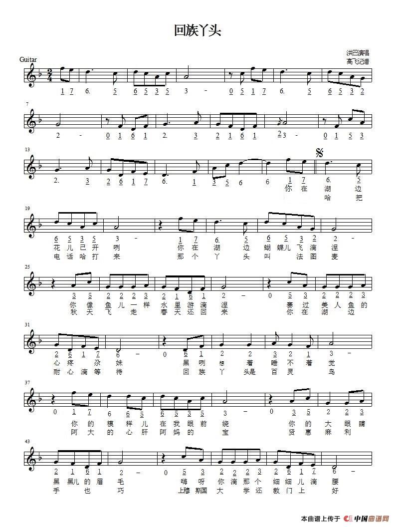演唱(奏):洪巴 来源:高飞记谱 上传:高飞5210