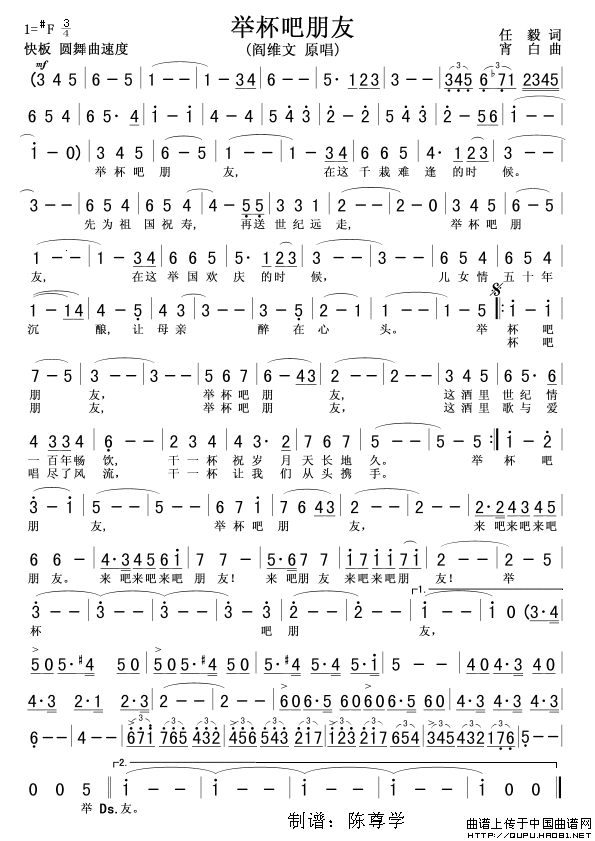 提示:在曲谱图片上单击右键,选择"图片另存为..."即可将曲谱保存到您的电脑中,打印时候可将图片插入到WORD中,调整合适大小打印即可。