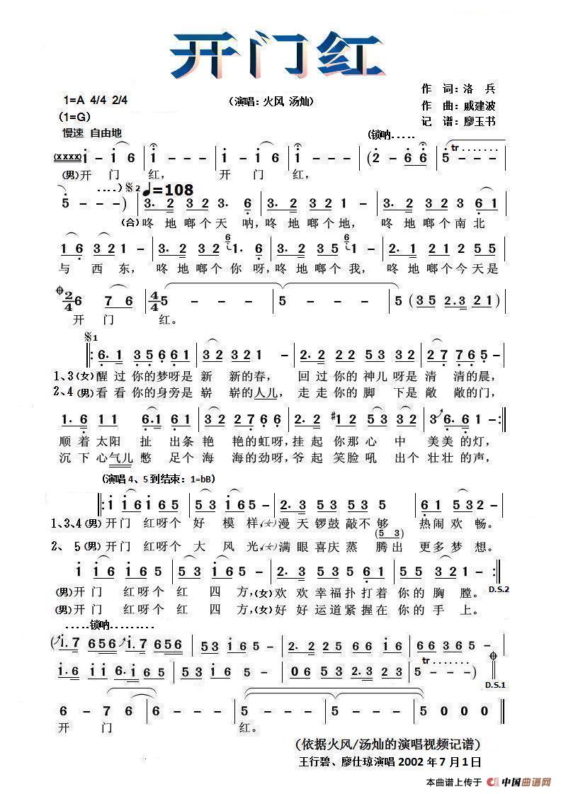 开门红(洛兵词 戚建波曲)