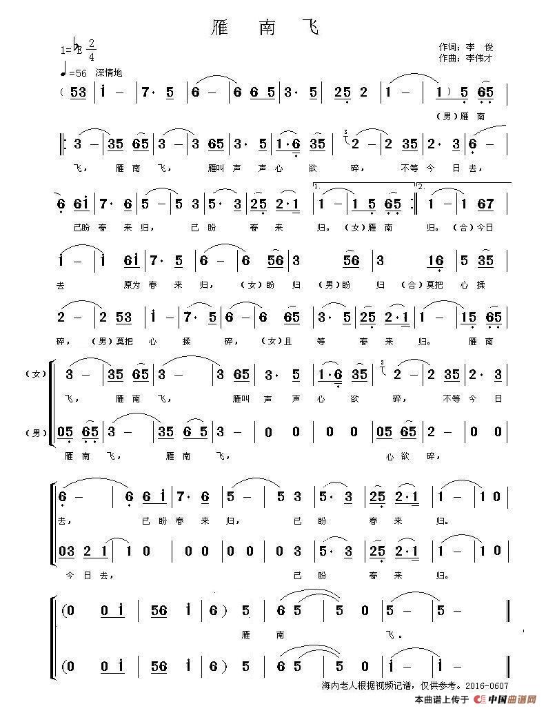 作词:李俊   作曲:李伟才   来源:谱友海内老人上传   上传:海内老人   日期:2016-06-07   浏览次数: