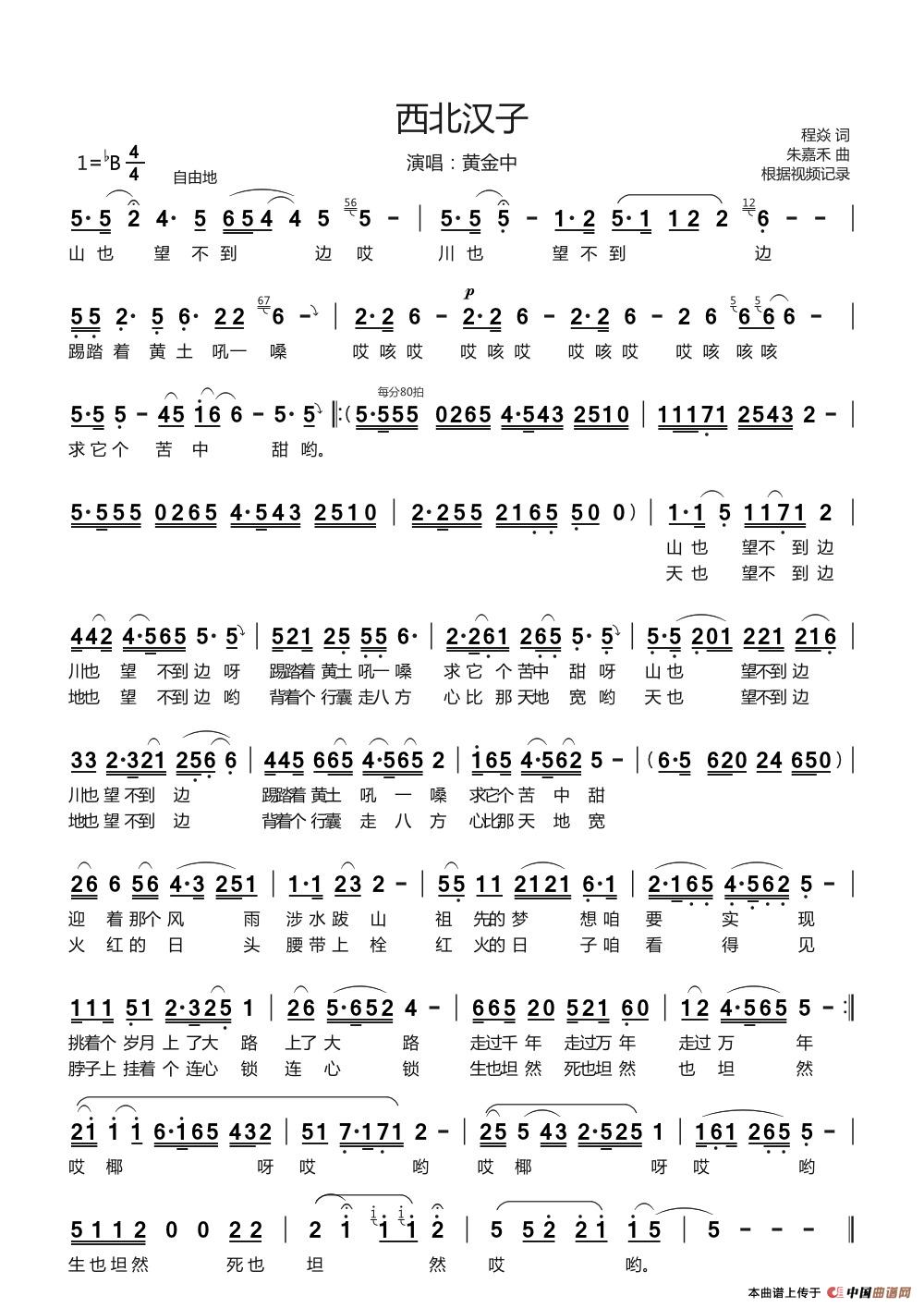 关于《西北汉子》曲谱的评论