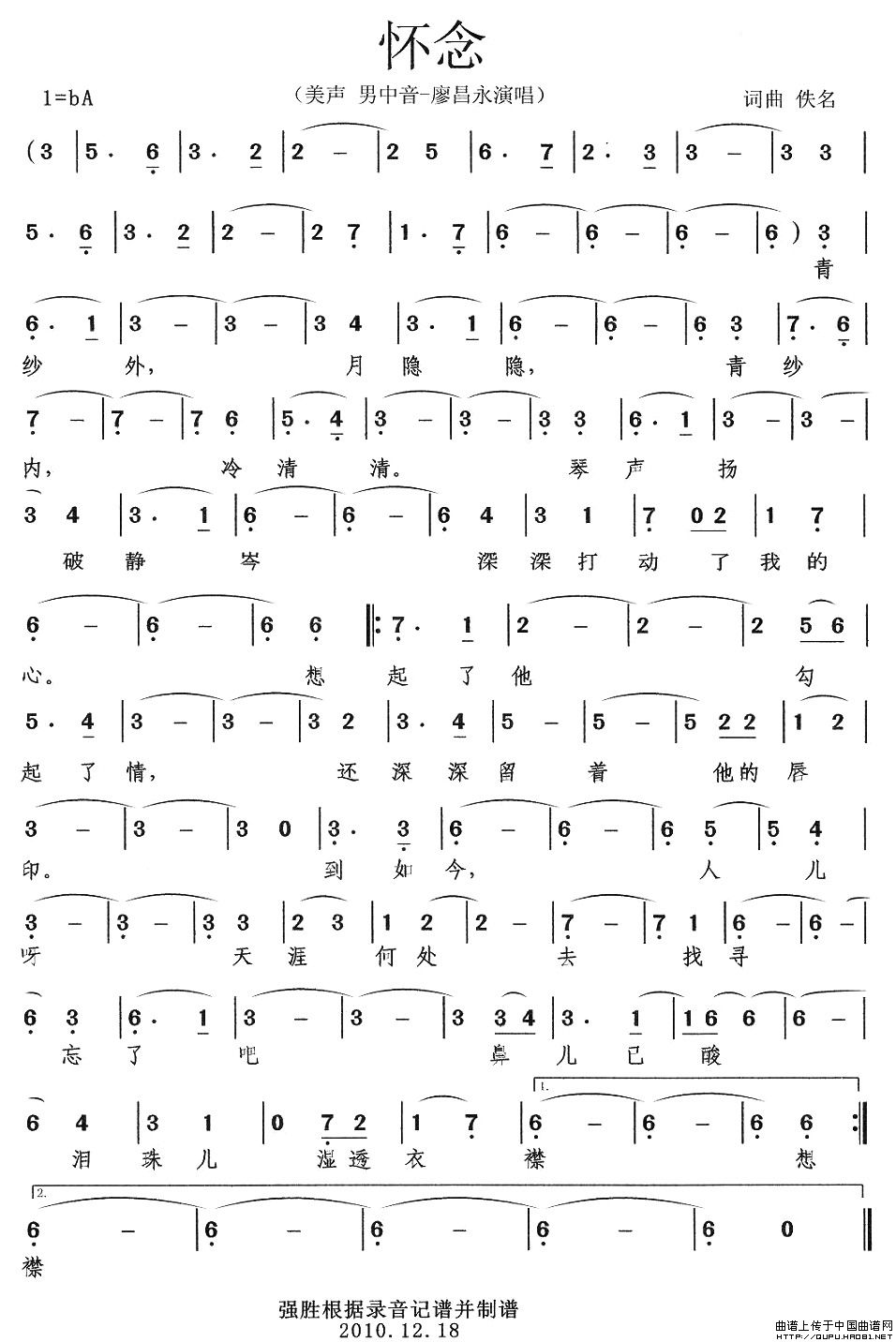 怀念(廖昌永演唱版)