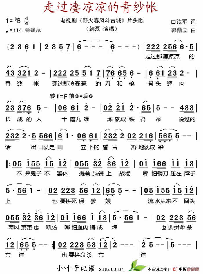 关于《走过凄凉凉的青纱帐》曲谱的评论