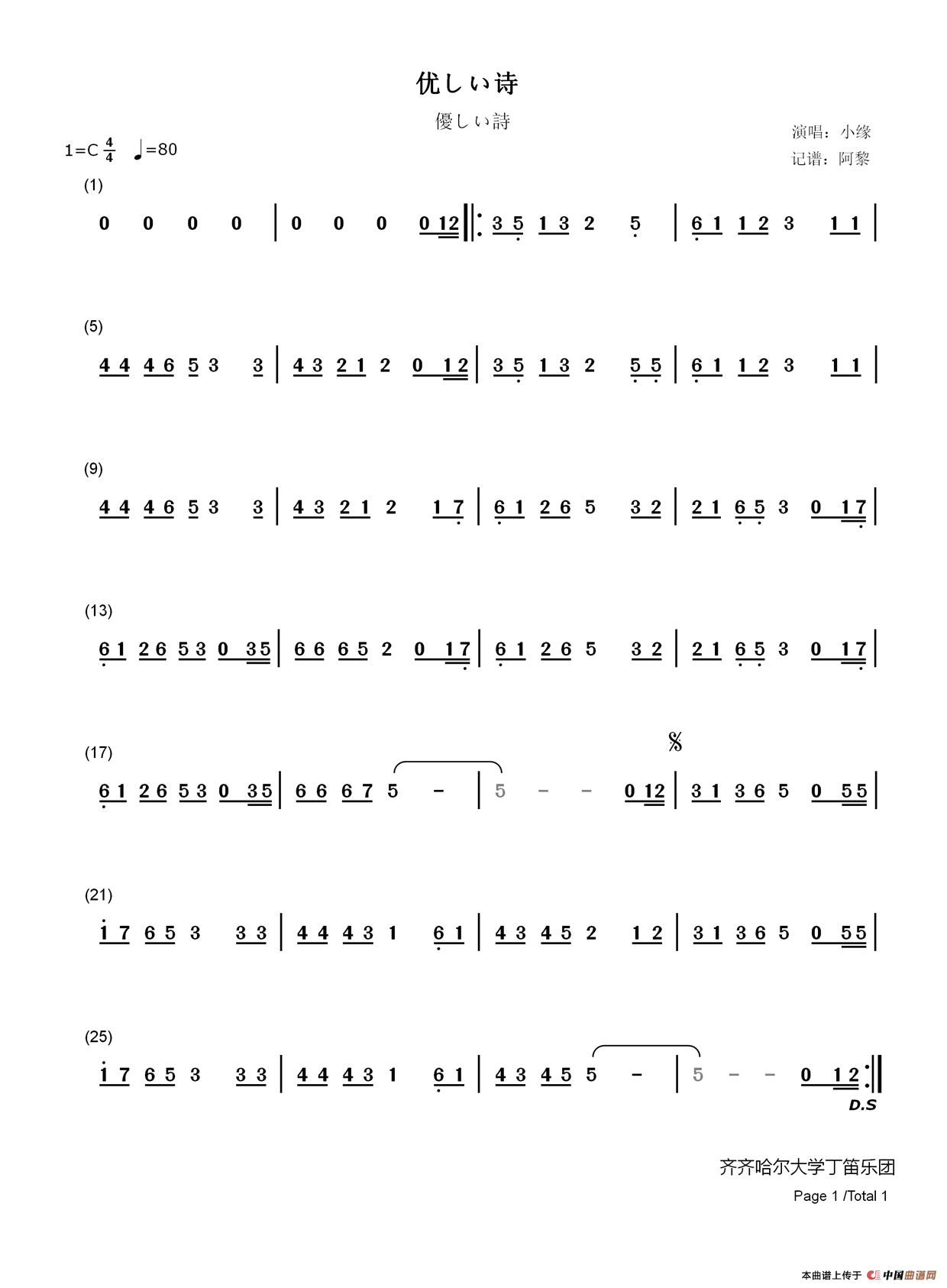 作词:松尾蓝 作曲:松尾蓝 演唱(奏):小缘 来源:齐齐哈尔大学丁笛乐团 上传:断章清明