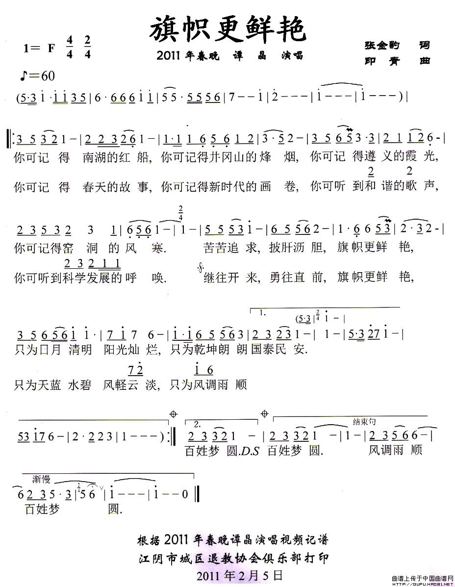 关于《旗帜更鲜艳》曲谱的评论