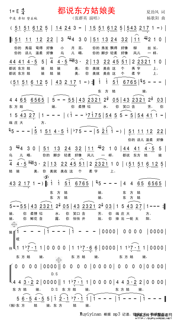 关于《都说东方姑娘美》曲谱的评论