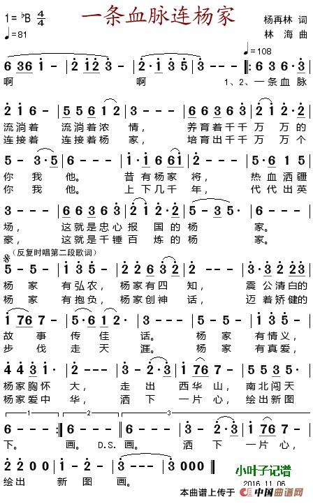 作词:杨再林 作曲: 林海 来源:小叶子记谱制谱 上传:热爱音乐88
