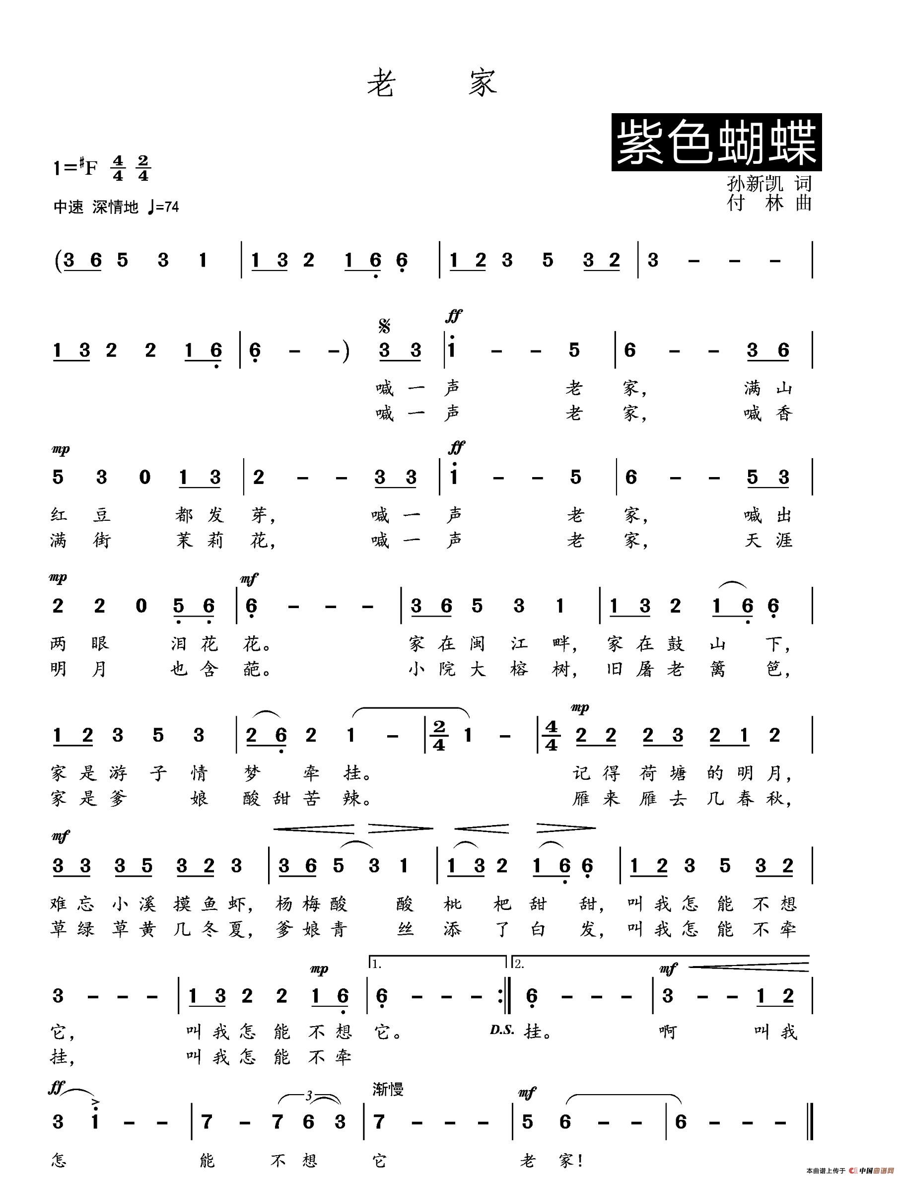 老家(孙新凯词 付林曲、简谱+五线谱)