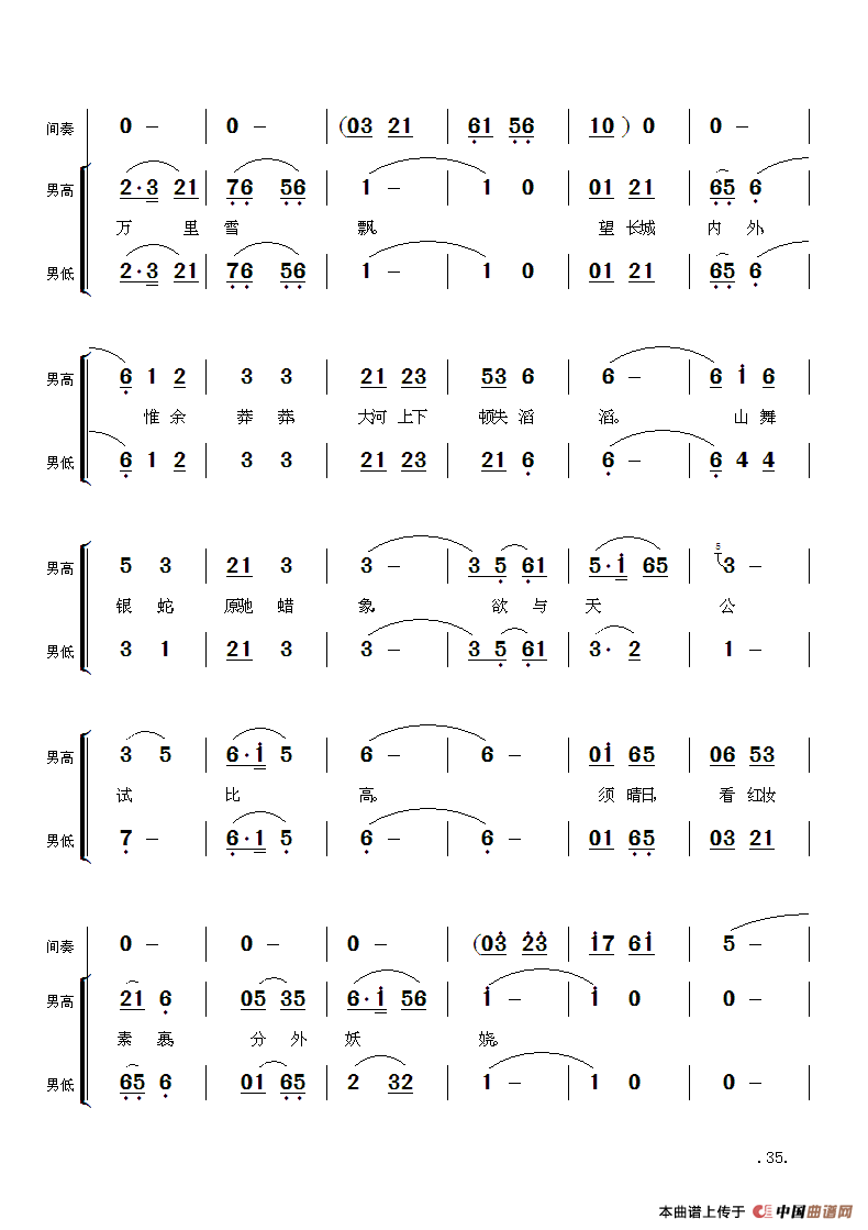 关于《毛主席诗词交响组歌:沁园春·雪》曲谱的评论