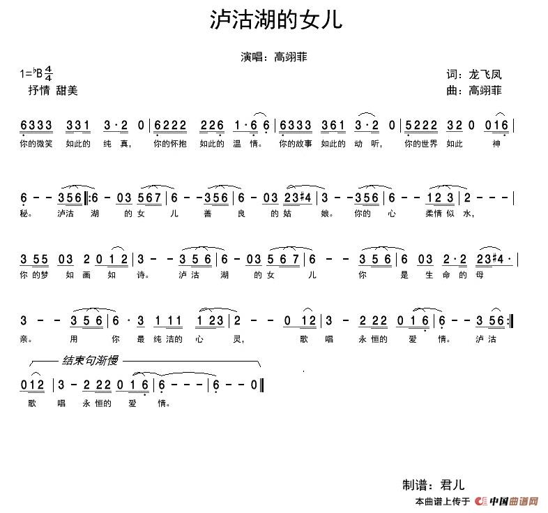 关于《泸沽湖的女儿》曲谱的评论