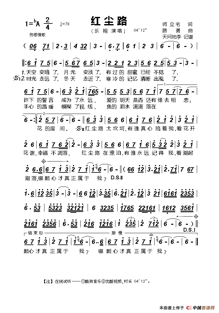 天空变暗了,月光变淡了,有过的甜蜜已经不见了,许下的誓言,成为了永远,爱的明天是否还有缘去相恋。时光走远了,冬天走近了,寒冷的记忆清晰出现了,手心的温暖,模糊了视线,鱼的泪水滴滴落在花的眉间。红尘路,太坎坷,有谁真心陪着我,看花开花谢,幸福不凋落。红尘路,在漂泊,有谁永远记得我,看潮起潮落,那颗心才真正属于我?(music)时光走远了,冬天走近了,寒冷的记忆清晰出现了,手心的温暖,模糊了视线,鱼的泪水滴滴落在花的眉间。红尘路,太坎坷,有谁真心陪着我,看花开花谢,幸福不凋落。红尘路,在漂泊,有谁永远记得我,看潮起潮落,那颗心才真正属于我?红尘路,太坎坷,有谁真心陪着我,看花开花谢,幸福不凋落。红尘路,在漂泊,有谁永远记得我,看潮起潮落,那颗心才真正属于我?那颗心才真正属于我?