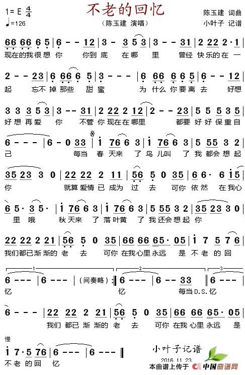 关于《不老的回忆》曲谱的评论