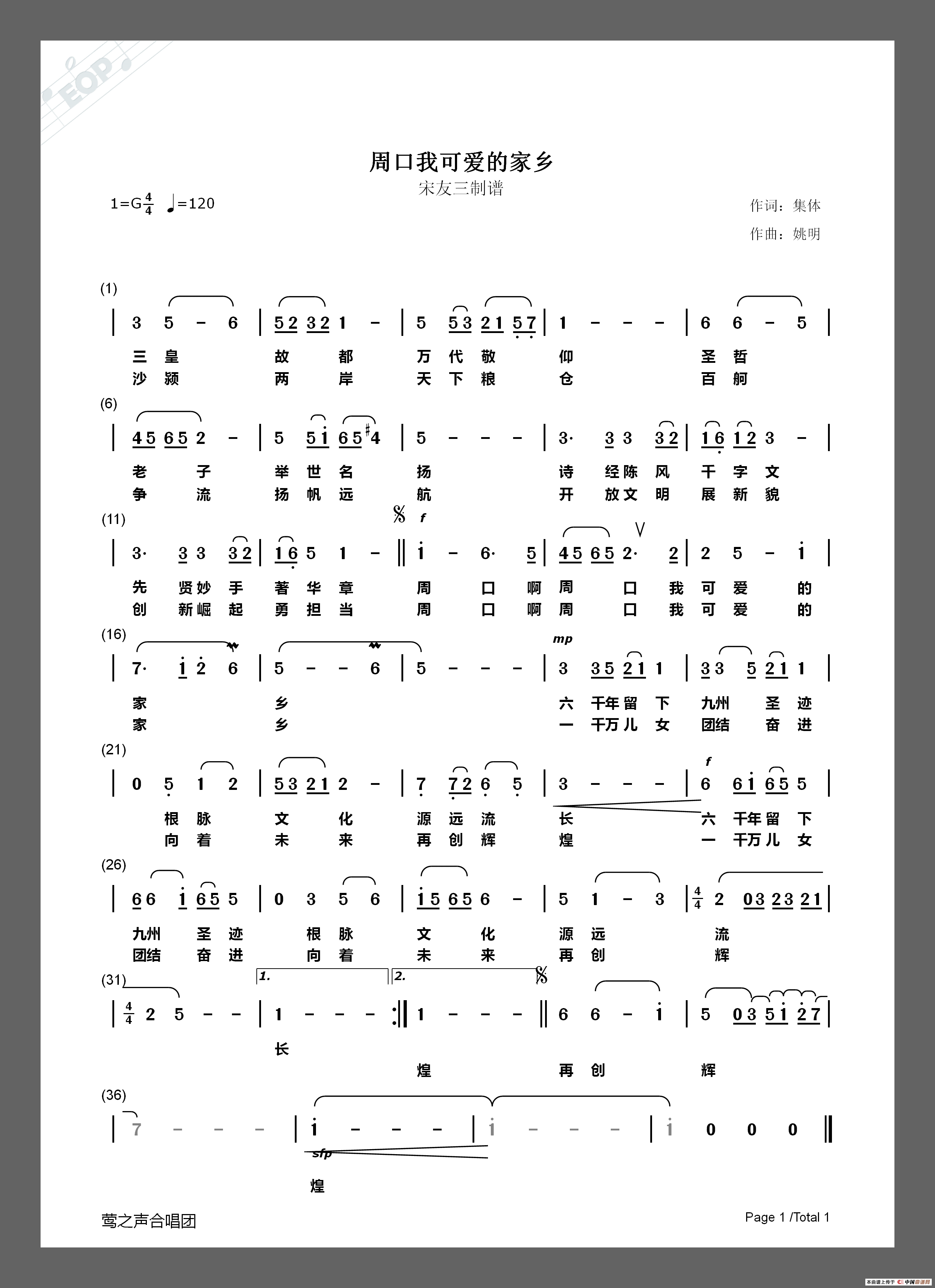关于《周口 我可爱的家乡》曲谱的评论